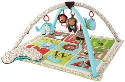 Everybody's friends are at this zoo. Our sweet and educational Activity Gym brings new life to ABCs. Soft arches cover a fun-filled mat and matching tummy-time pillow. 13 loops and 5 hanging animal toys offer multi-sensory play at every stage of development.